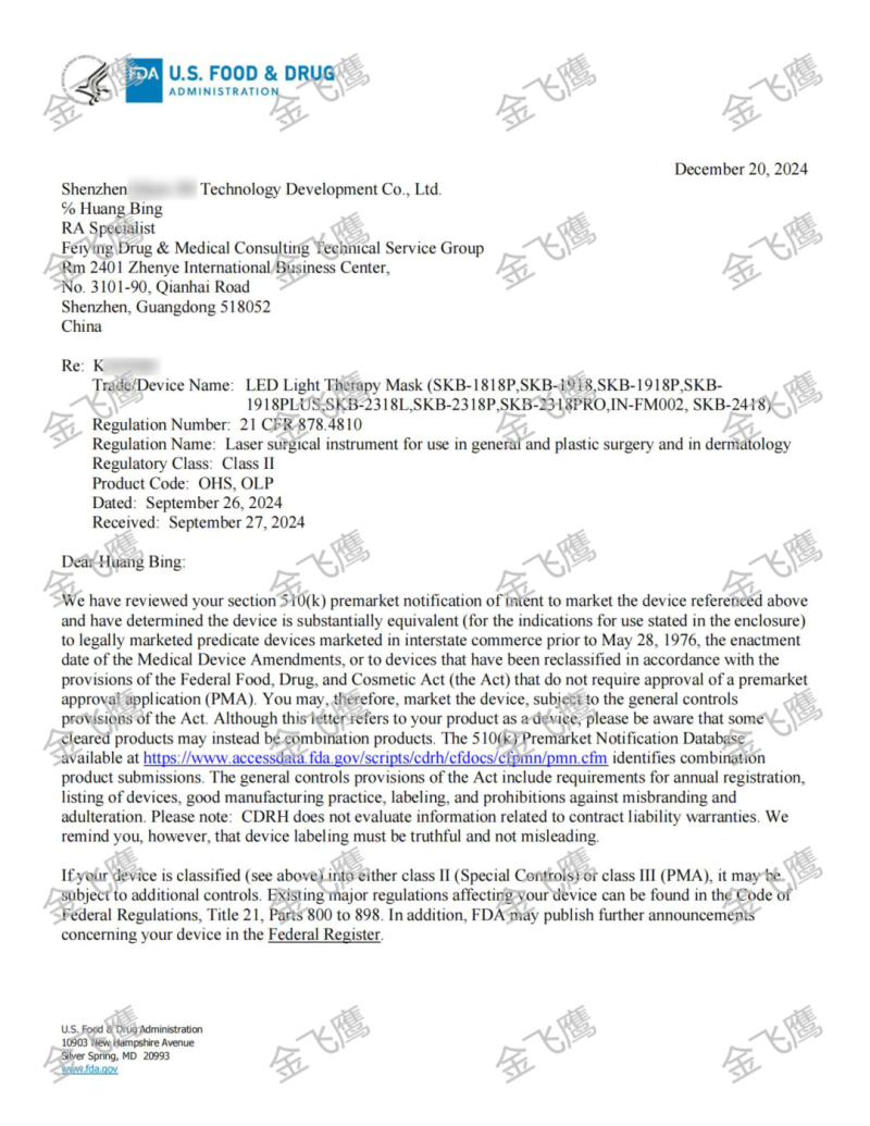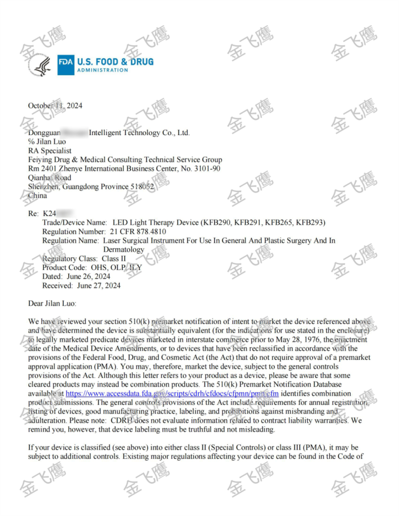 取得雙K號(hào)的案例實(shí)屬首例,但紅藍(lán)光面罩我們此前已積累了不少案例,今年10月,我們輔導(dǎo)的東莞一家企業(yè)成功獲批了紅藍(lán)光面罩510(k),2022年也就此類產(chǎn)品宣傳過一次。(戳此回顧→紅藍(lán)光面罩)