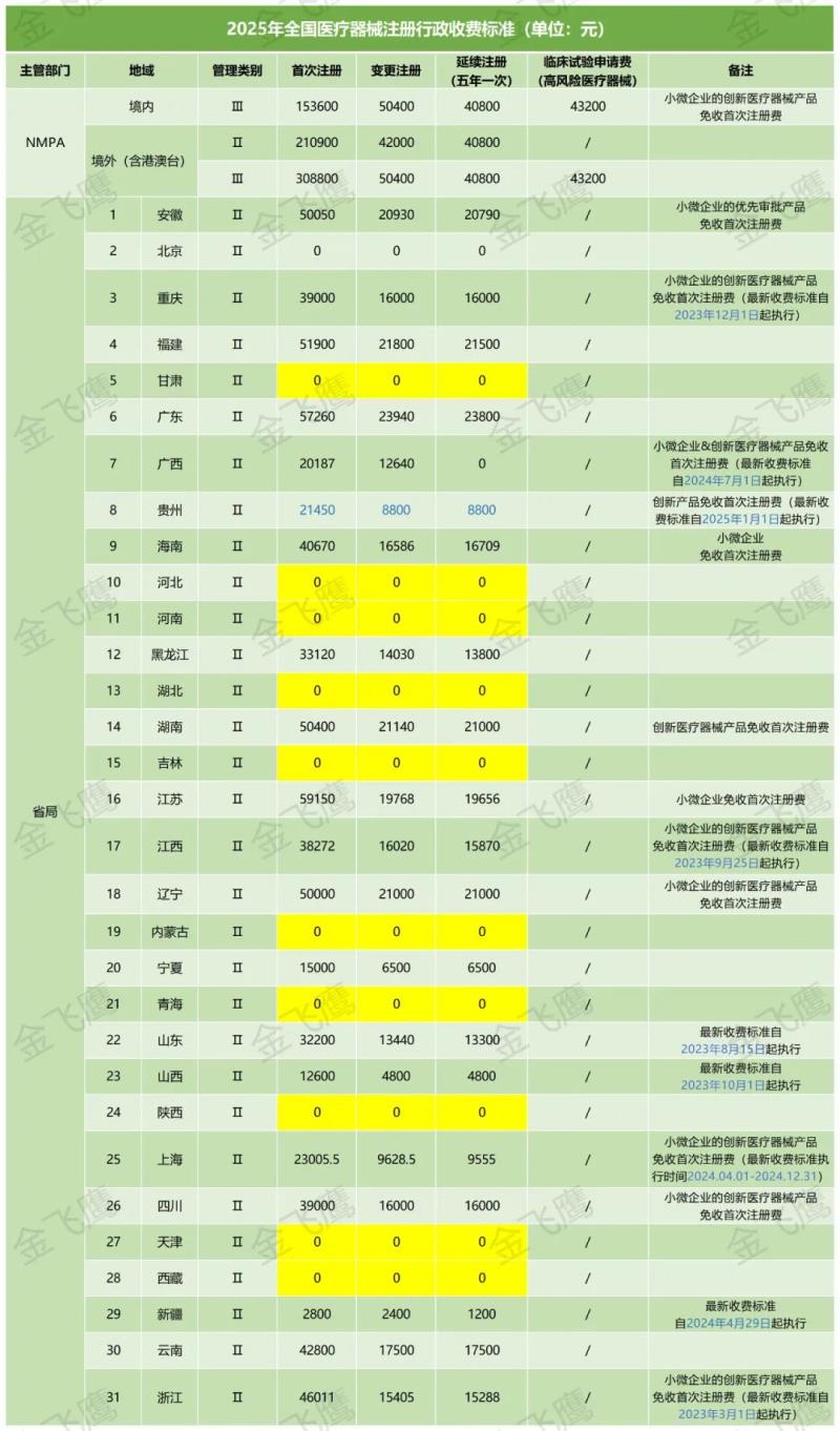 最后依然是按咱們的老規(guī)矩,我們將2025年【全國(guó)各省醫(yī)療器械注冊(cè)行政收費(fèi)標(biāo)準(zhǔn)】進(jìn)行實(shí)時(shí)更新,具體見(jiàn)下圖,大家記得收藏備用哦!