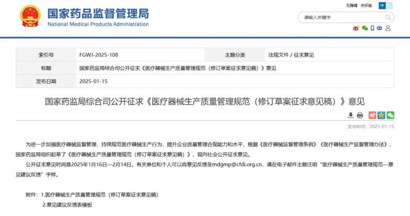 1月15日,國家藥監(jiān)局發(fā)布《醫(yī)療器械生產質量管理規(guī)范(修訂草案征求意見稿)》(以下簡稱“新版《規(guī)范》”),并向社會公開征求意見。