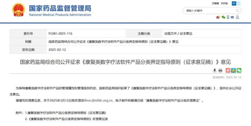 近日,國(guó)家藥監(jiān)局綜合司發(fā)布《康復(fù)類數(shù)字療法軟件產(chǎn)品分類界定指導(dǎo)原則(征求意見稿)》(以下簡(jiǎn)稱《指導(dǎo)原則》),并向社會(huì)公開征求意見。