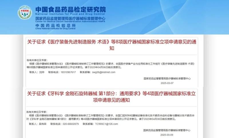 近日,國家藥監(jiān)局醫(yī)療器械標(biāo)管中心發(fā)布《醫(yī)療裝備先進(jìn)制造服務(wù)術(shù)語》《摻銩光纖激光治療機(jī)技術(shù)要求》《牙科學(xué) 金剛石旋轉(zhuǎn)器械 第1部分:通用要求》等12項(xiàng)醫(yī)療器械國家標(biāo)準(zhǔn)立項(xiàng)申請(qǐng)意見的通知,同時(shí)隨附了各項(xiàng)標(biāo)準(zhǔn)草案,并向社會(huì)公開征求意見,意見征求時(shí)間均為一個(gè)月。