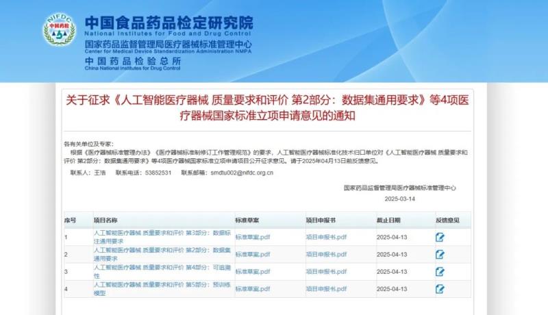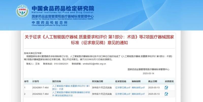 3月14日,國家藥監(jiān)局醫(yī)療器械標(biāo)準(zhǔn)管理中心發(fā)布《人工智能醫(yī)療器械 質(zhì)量要求和評價(jià) 第1部分:術(shù)語》《人工智能醫(yī)療器械 肺部影像輔助分析軟件 算法性能測試方法》2項(xiàng)醫(yī)療器械國家標(biāo)準(zhǔn)的征求意見稿,并向社會(huì)公開征求意見。