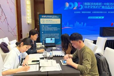 為加強韓國慶尚南道與中國四川省在抗老化醫(yī)療領域的交流與合作,促進技術創(chuàng)新與產業(yè)發(fā)展,在四川省經濟合作局的大力支持下,4月9日,2025韓國(慶尚南道)-中國(四川省)抗老化醫(yī)療產業(yè)合作交流暨對接會在成都隆重舉辦,大韓貿易投資振興公社特組織了韓國10家企業(yè)(如創(chuàng)新耳鳴及睡眠健康解決方案、RF射頻熱療護理系統(tǒng)、眼適應增強和疲勞恢復儀等企業(yè)),與四川省企業(yè)進行一對一交流洽談,旨在推動雙方在技術研發(fā)、產業(yè)合作、市場拓展等方面的深入合作。