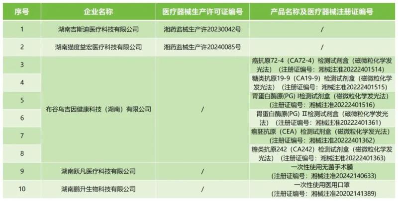 4月11日,湖南省藥監(jiān)局發(fā)布公告稱,按照《醫(yī)療器械監(jiān)督管理?xiàng)l例》《醫(yī)療器械生產(chǎn)監(jiān)督管理辦法》有關(guān)規(guī)定,根據(jù)企業(yè)申請(qǐng),現(xiàn)注銷湖南吉斯迪醫(yī)療科技有限公司等2家企業(yè)的醫(yī)療器械生產(chǎn)許可證;注銷布谷鳥吉因健康科技(湖南)有限公司、湖南躍凡醫(yī)療科技有限公司等3家企業(yè)的8個(gè)產(chǎn)品的醫(yī)療器械注冊(cè)證,具體明細(xì)如下: