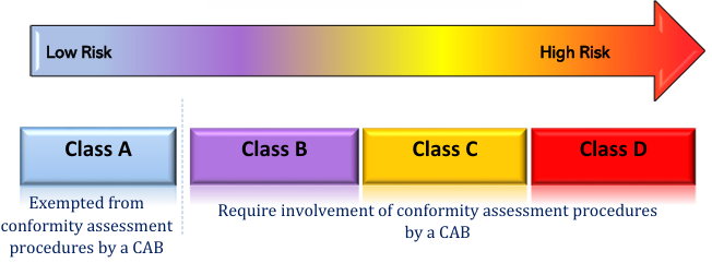 馬來(lái)西亞采用基于風(fēng)險(xiǎn)的分類系統(tǒng),將醫(yī)療器械分為 A、B、C、D 四個(gè)等級(jí):