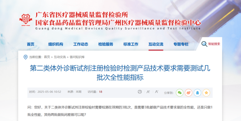 根據(jù)廣東省醫(yī)療器械質量監(jiān)督檢驗所的答復,二類體外診斷試劑檢測可選擇只做1批全性能,其他兩批做批間差。鑒于試劑注冊檢驗需要配套儀器資料,因此建議待儀器性能注冊檢測合格后或儀器已經過第三方的計量校準,再申請試劑注冊檢驗。