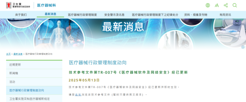 近日,香港衛(wèi)生署醫(yī)療器械科對(duì)TR-007號(hào)《醫(yī)療器械軟件及網(wǎng)絡(luò)安全》技術(shù)參考文件進(jìn)行更新(2023版的修訂版),本次修訂內(nèi)容如下: