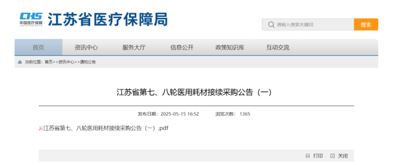 申報(bào)路徑:登錄江蘇省招采子系統(tǒng)-耗材招采管理-帶量采購(新)-省級(jí)帶量采購-省第七、八輪接續(xù)。