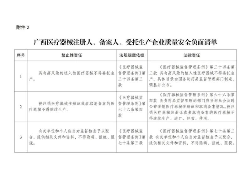 以上僅對《廣西醫(yī)療器械注冊人、備案人、受托生產企業(yè)質量安全負面清單》進行轉載.