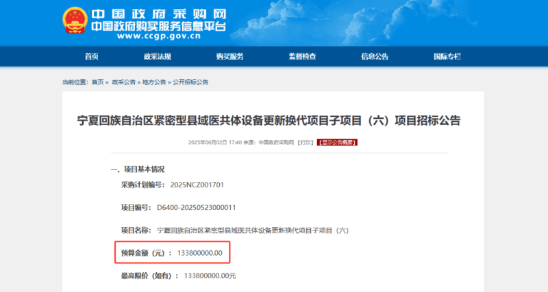 6月2日,中國(guó)政府采購(gòu)網(wǎng)發(fā)布了《寧夏回族自治區(qū)緊密型縣域醫(yī)共體設(shè)備更新?lián)Q代項(xiàng)目子項(xiàng)目(六)項(xiàng)目招標(biāo)公告》,125臺(tái)彩色多普勒超聲診斷儀采購(gòu)大單啟動(dòng)。