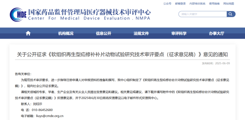 6月9日,國家藥監(jiān)局器審中心發(fā)布《軟組織再生型疝修補補片動物試驗研究技術審評要點(征求意見稿)》(以下簡稱《要點》),并向社會公開征求意見。