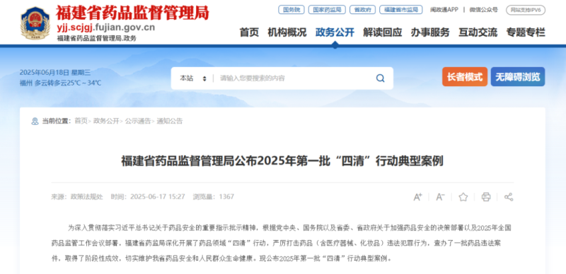 6月17日,福建省藥監(jiān)局公布《2025年第一批“四清”行動(dòng)典型案例》,涉及“兩品一械”領(lǐng)域共計(jì)10個(gè)違法案例,其中與醫(yī)療器械相關(guān)的案例如下:
