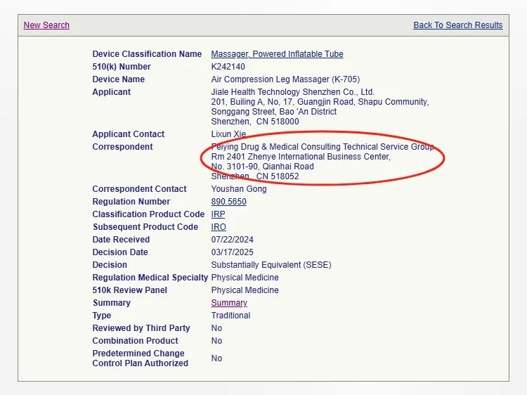 就在今年3月,我們成功輔導(dǎo)深圳一家企業(yè)獲批氣壓腿部按摩器的510(k):