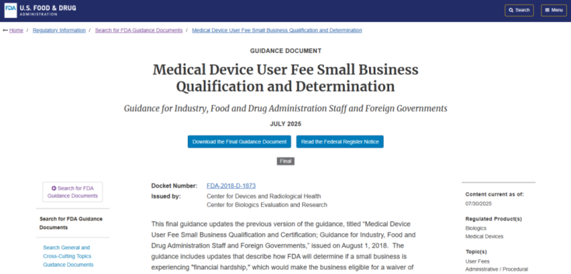 近日,F(xiàn)DA更新了有關(guān)小企業(yè)資質(zhì)申請的指南文件Medical Device User Fee Small Business Qualification and Determination,在指南中詳細說明了“小企業(yè)注冊年費減免”的條件。