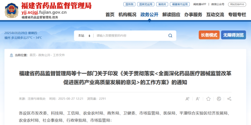 近日,福建省藥監(jiān)局發(fā)布《關于貫徹落實<全面深化藥品醫(yī)療器械監(jiān)管改革促進醫(yī)藥產(chǎn)業(yè)高質(zhì)量發(fā)展的意見>的工作方案》(以下簡稱《工作方案》),從大力支持藥械研發(fā)創(chuàng)新、提高藥械審評審批質(zhì)效、提升醫(yī)藥產(chǎn)業(yè)全過程合規(guī)水平、擴大醫(yī)藥產(chǎn)業(yè)對外開放合作、強化產(chǎn)業(yè)發(fā)展和監(jiān)管體系保障五個方面共提出了24條舉措,并提到,力爭到